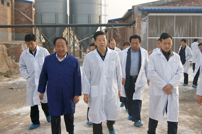 11月11日,由渭南市副市長吳蟒成帶隊,成員由各縣(市、區(qū))分管領(lǐng)導(dǎo)及畜牧(農(nóng)業(yè))局局長等一行50余人組成的全市建設(shè)陜西現(xiàn)代畜牧業(yè)示范區(qū)觀摩團現(xiàn)場觀摩石羊集團百萬只肉雞養(yǎng)殖示范園區(qū)建設(shè)情況,石羊集團副總裁韓春元、石羊集團肉雞事業(yè)部副總經(jīng)理何東力陪同觀摩。